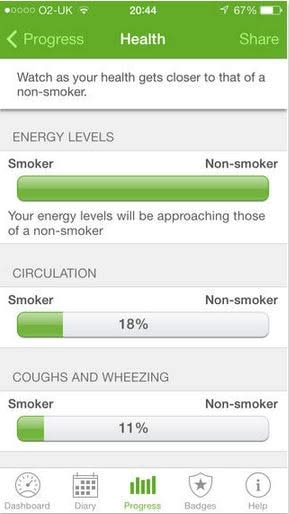 You'll receive tips to help you quit and can record the number of cravings you have each day and their severity. You can also keep a 10-second diary about your journey, to help you stay on track and inspire others along the way.